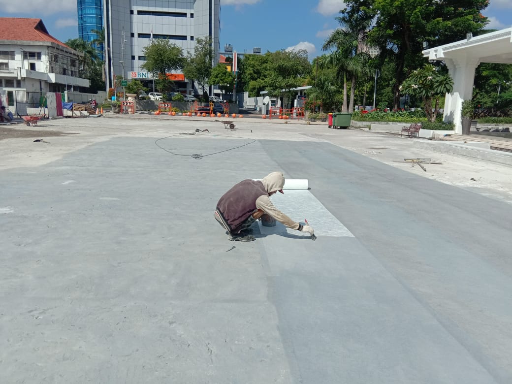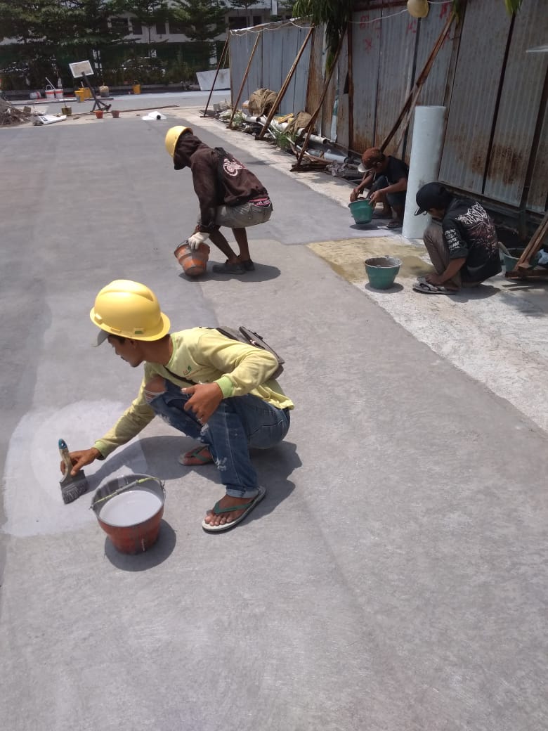 Dokumentasi CV.ALYA KARYA SENTOSA saat mengerjakan pekerjaan NITOPROOF AW GREY dan NITOFLOOR HARDTOP NATURAL di gedung GRAHADI.
